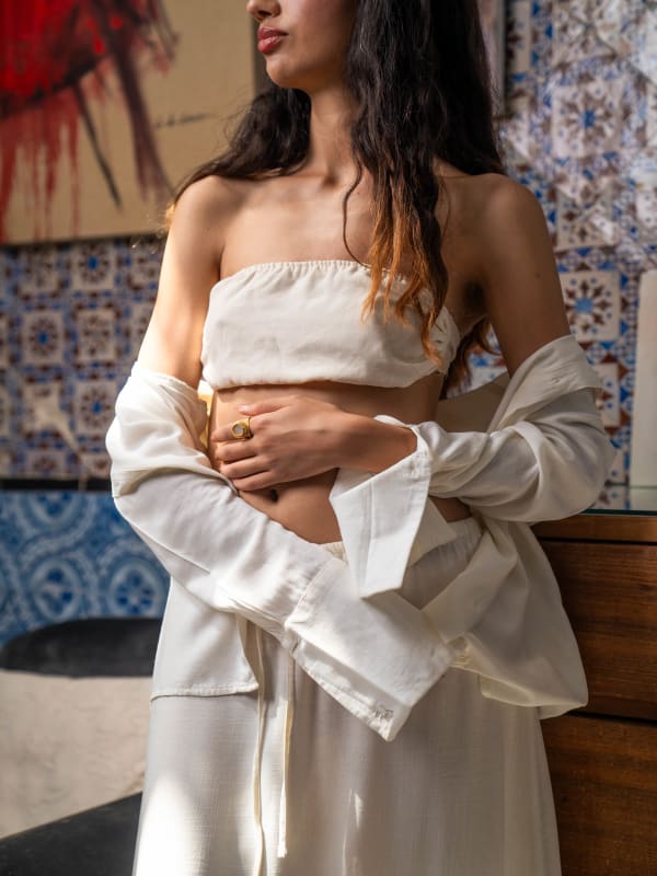• Se porte ouvert ou fermé comme un haut, et s’associe parfaitement en total look avec le pantalon Seroual Ballon ou le pantalon Large Classique.