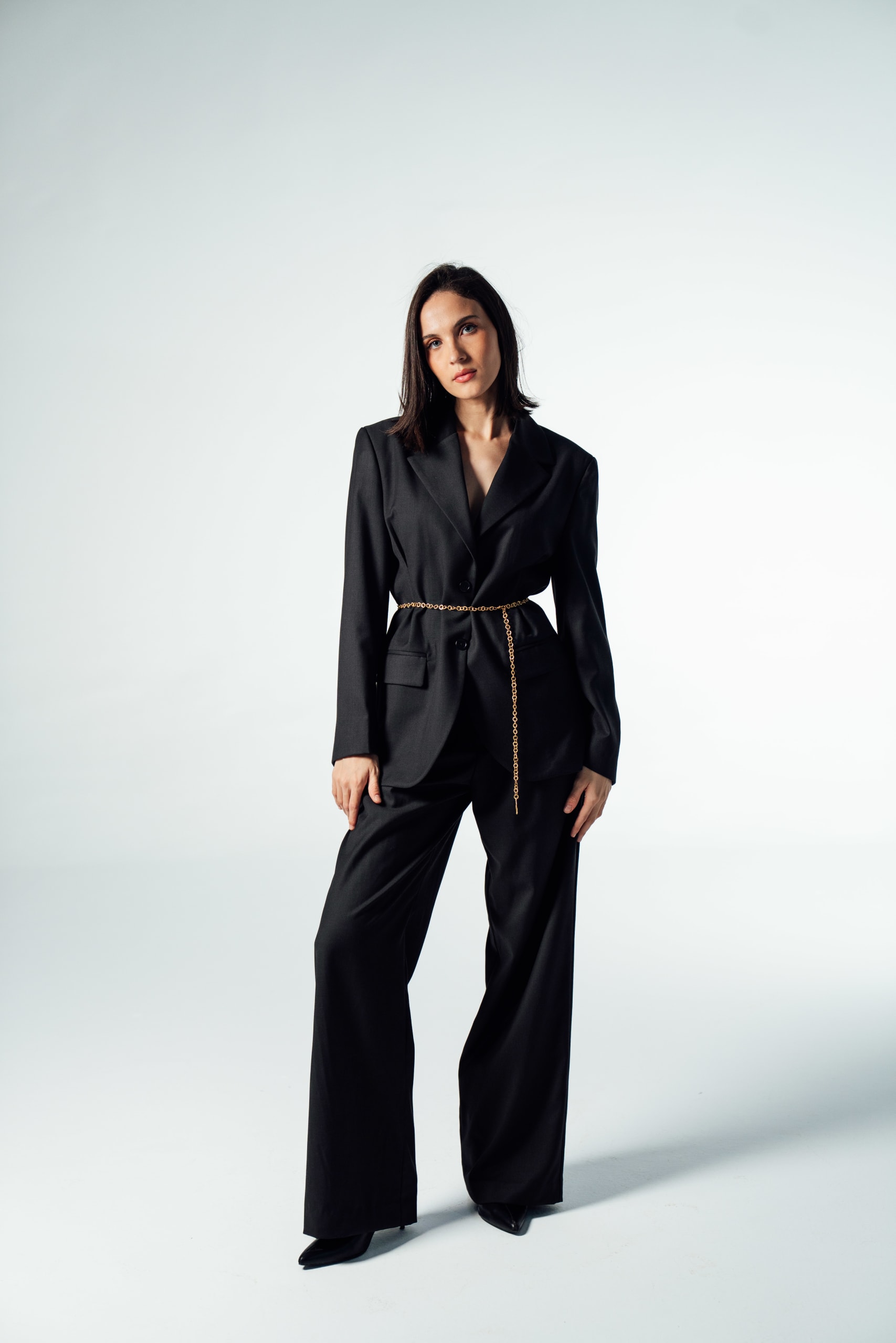 • Col blazer classique, fermeture à deux boutons sur le devant et quatre boutons aux manches.